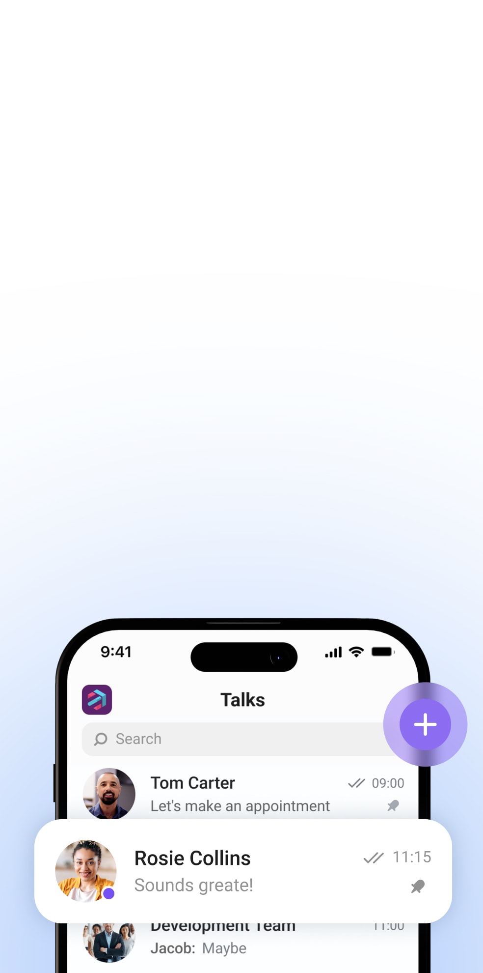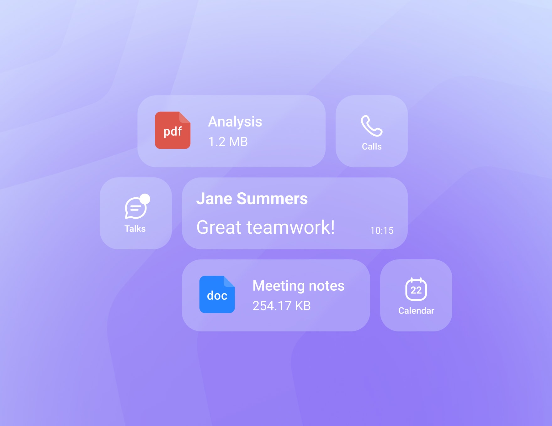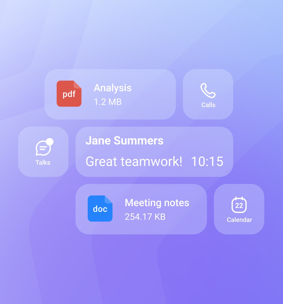 Consolidate all employee contacts into a single address book to solve tasks faster. Communicate in private or group chats, exchange files, and create channels to share news, project updates, or new ideas. Our platform is the perfect secure messaging platform to empower your team.